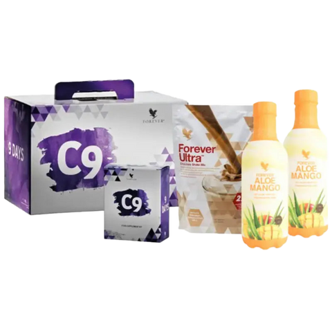 Forever C9 Mango Chocolate bevat een mooi pakket kwaliteitsproducten die je combineert met onze Forever Aloë Vera Drank. De C9 producten zijn nauwkeurig op elkaar afgestemd en helpen jou je doelen te bereiken. Volg de stappen in je programmaboekje en maak gebruik van de adviezen en praktische tips die je direct kunt toepassen. Forever C9 Mango Chocolate is de perfecte kick-start van ons F.I.T. programma.